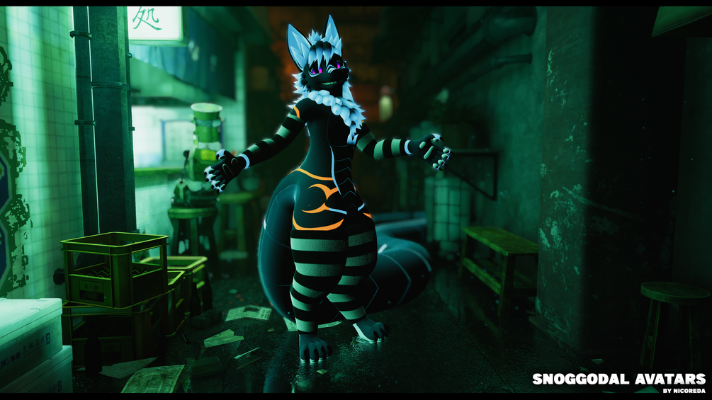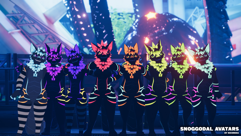 The Snoggodal is a mix between snake and dog/canine ! You'll see some features that let you customise a lot in the avatar menu inside VRChat.