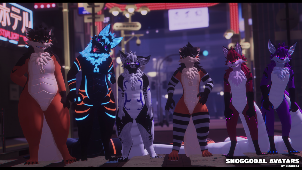 The Snoggodal is a mix between snake and dog/canine ! You'll see some features that let you customise a lot in the avatar menu inside VRChat.